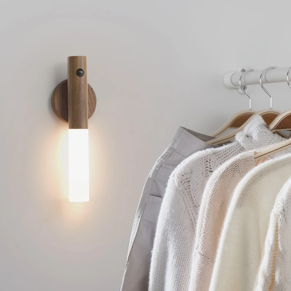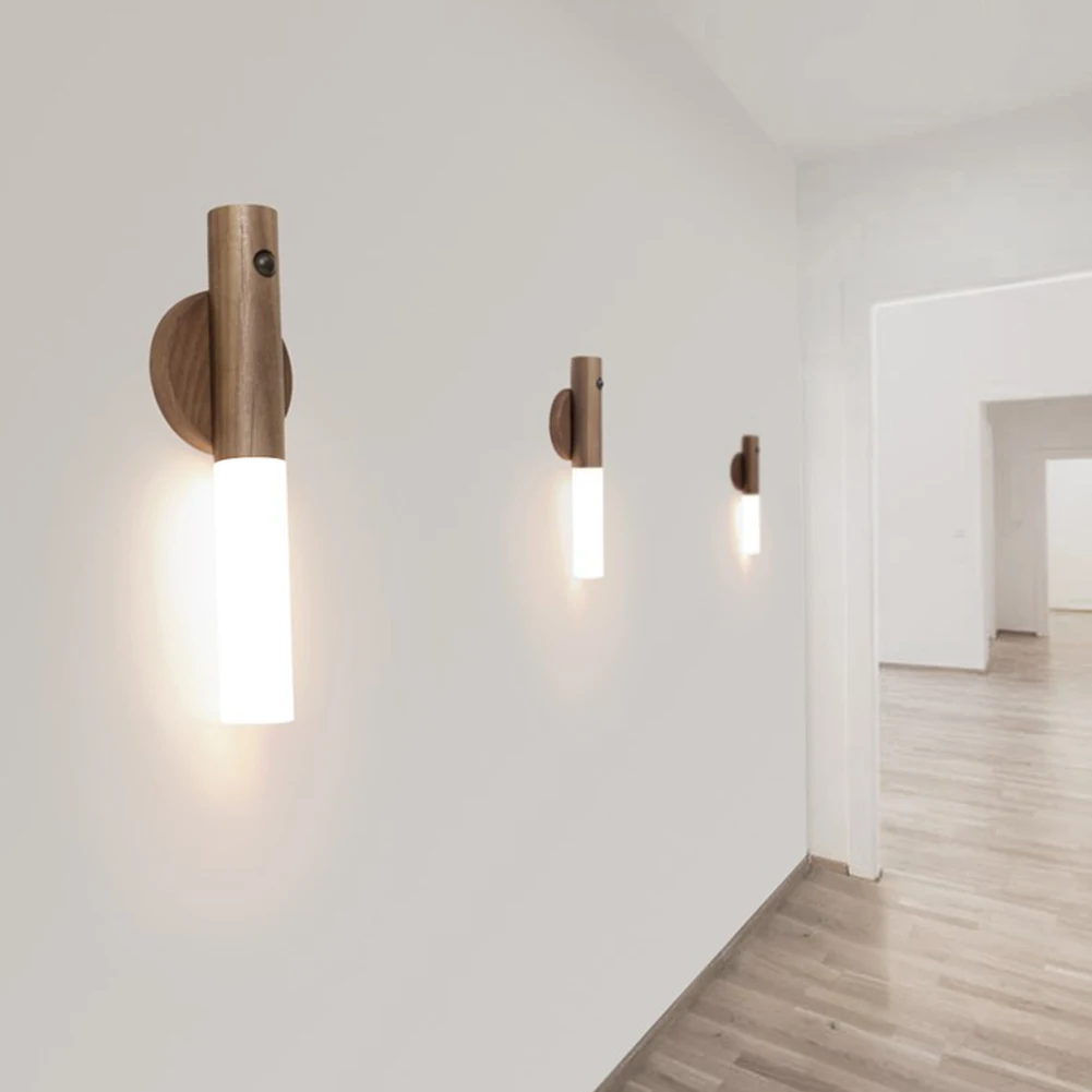 LED Warm Motion Sensor Light: Wooden Motion Sensor Wall Lamp