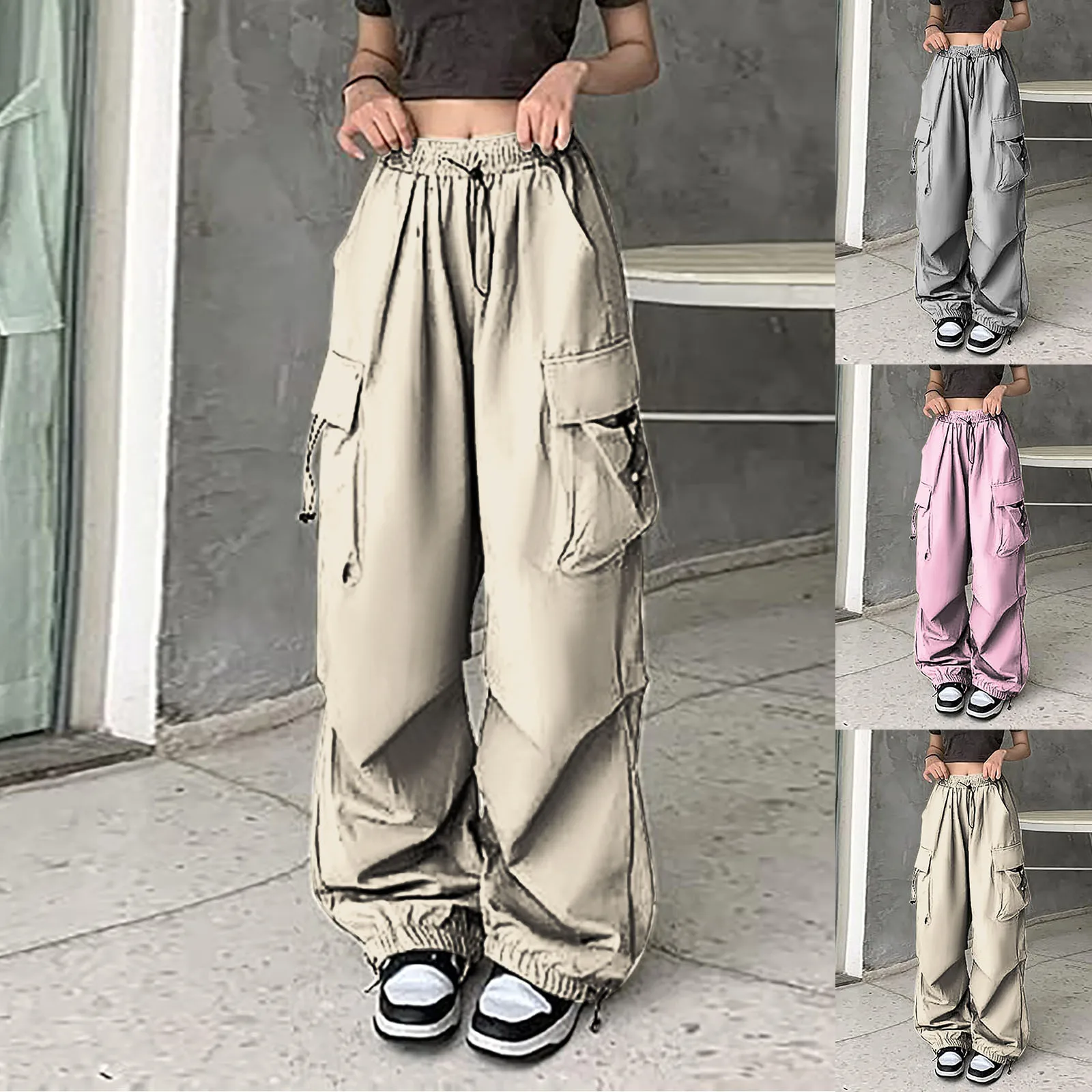 Women Baggy Cargo Pants Solid Elastic Waist Casual Pants