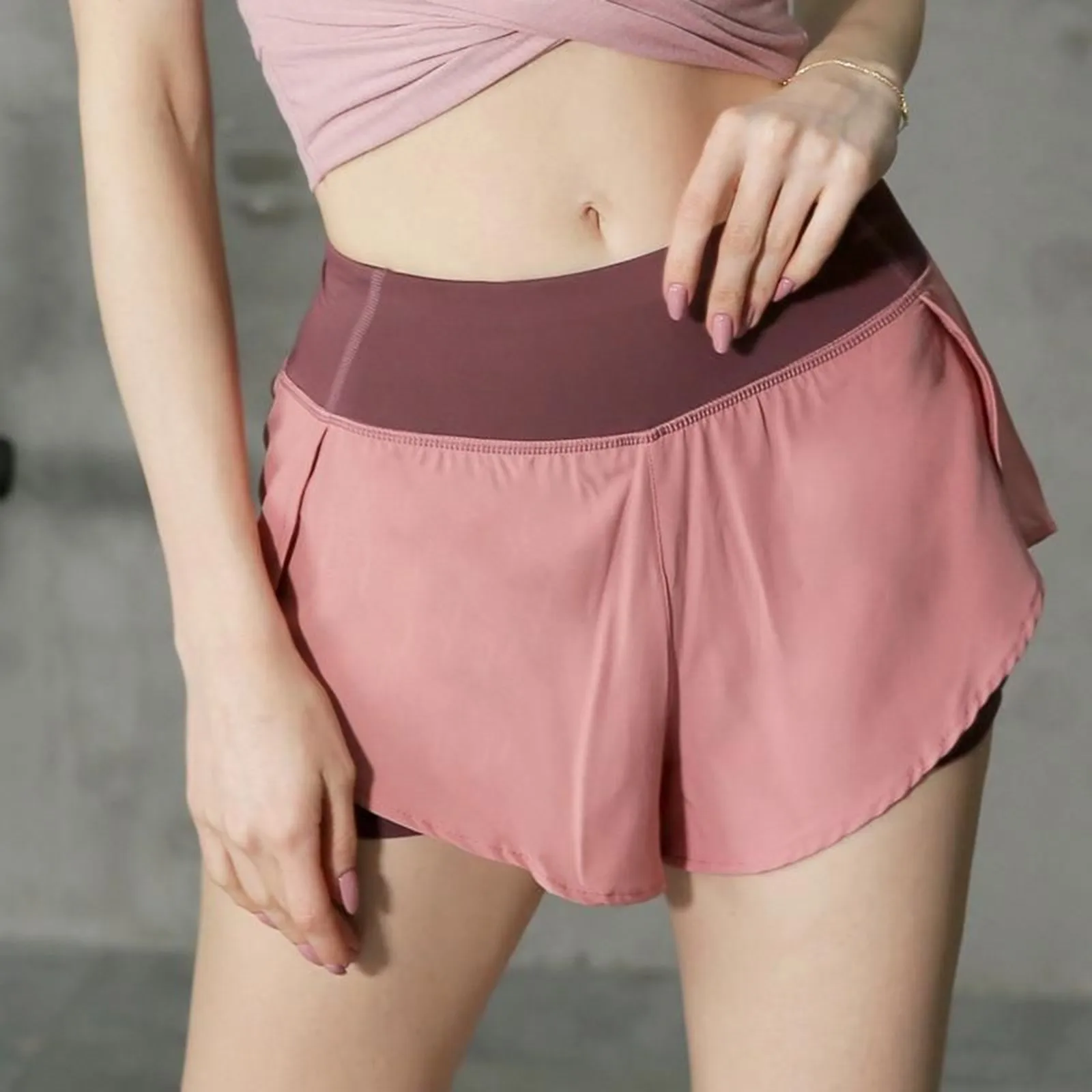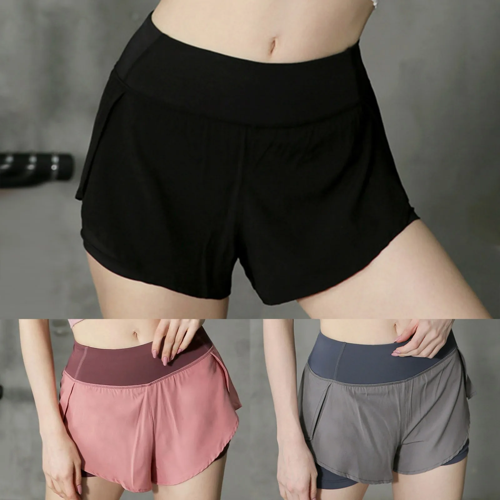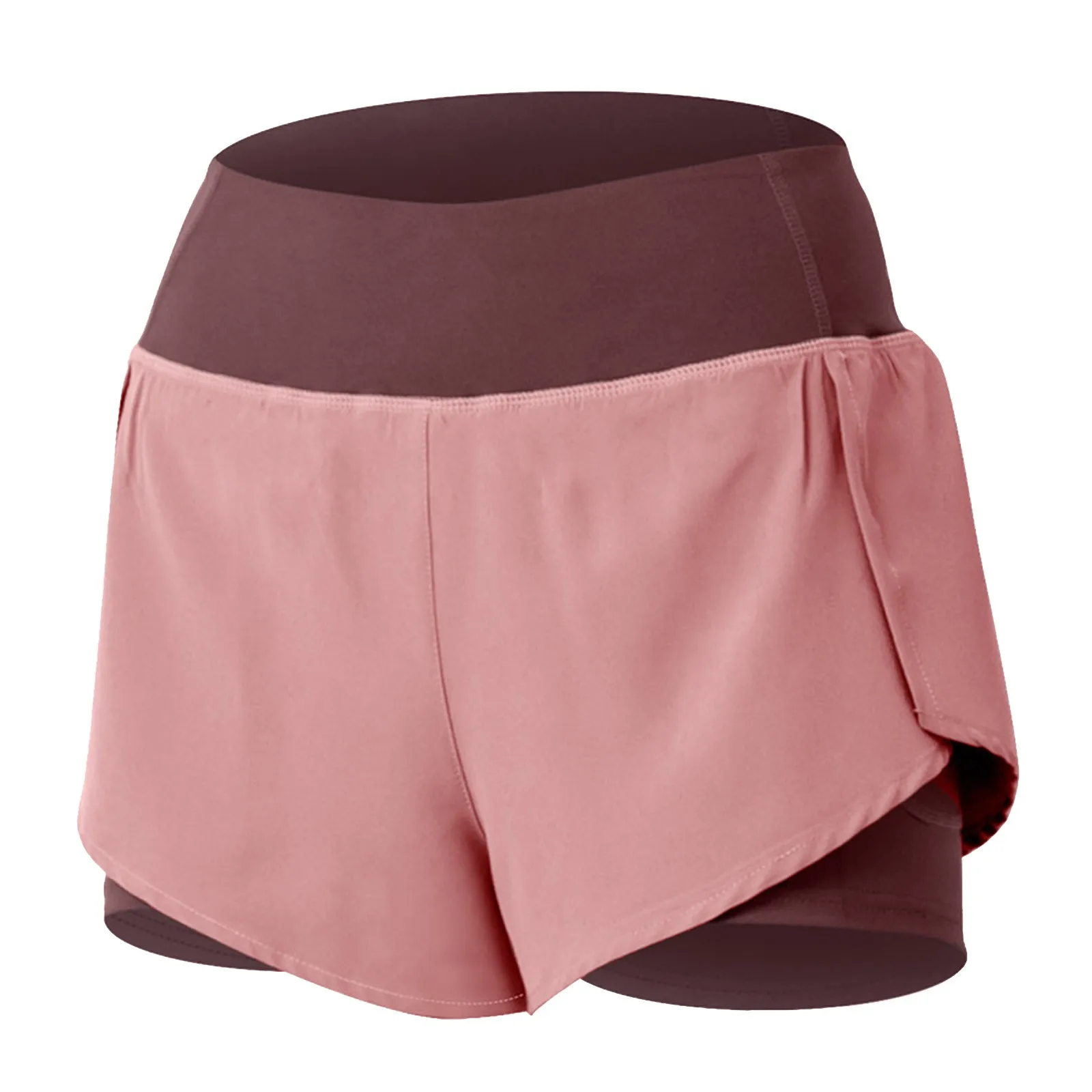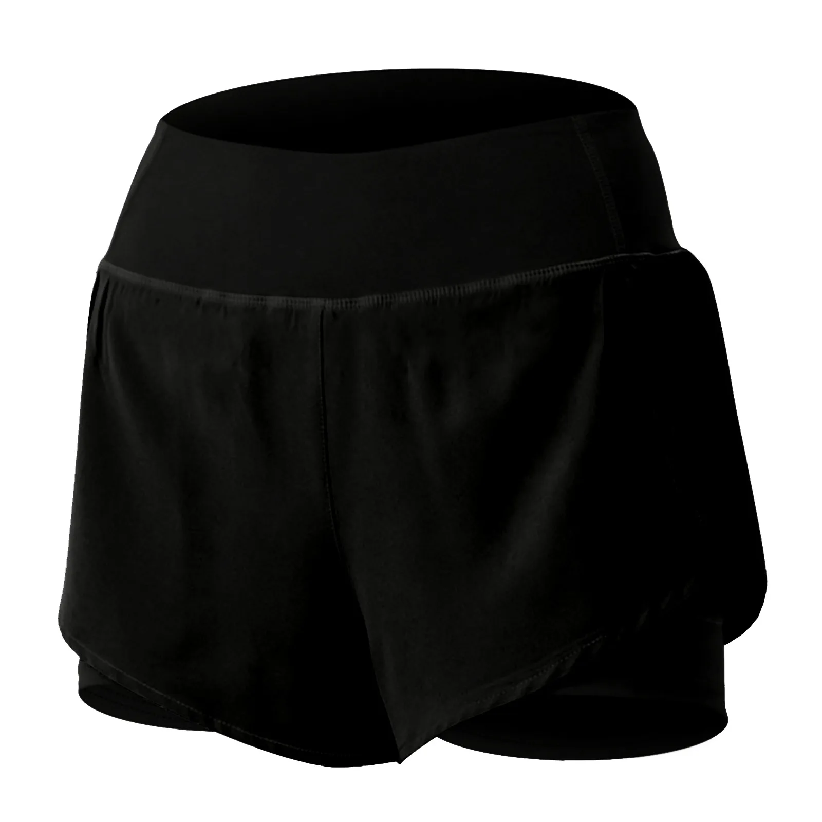 Women Double Layer Yoga Shorts Fake Two Piece Ruffled Stretch Shorts