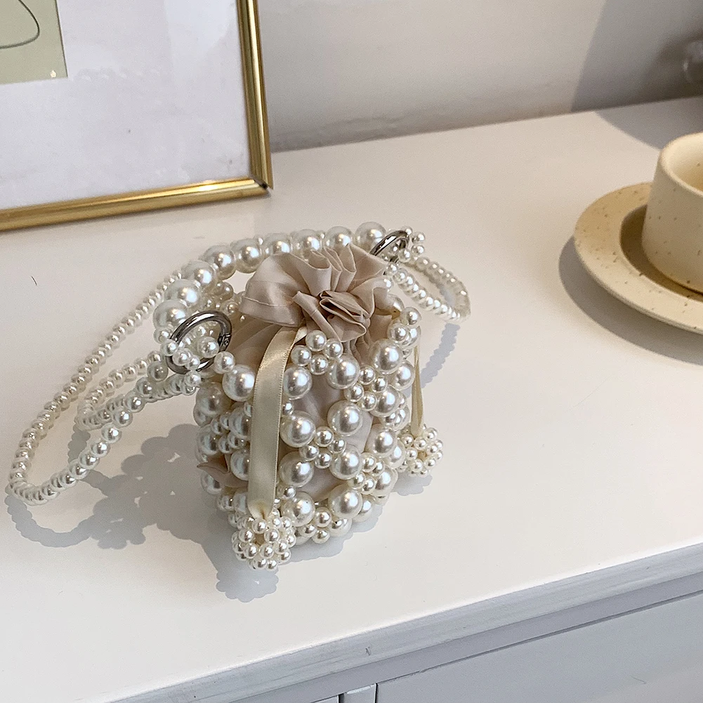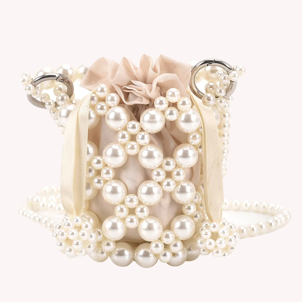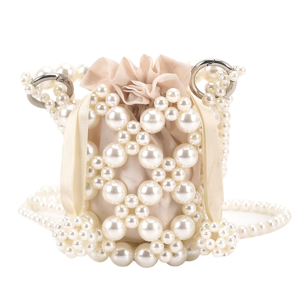 Women Elegant Crossbody Bag Acrylic Pearl Bucket Handbag