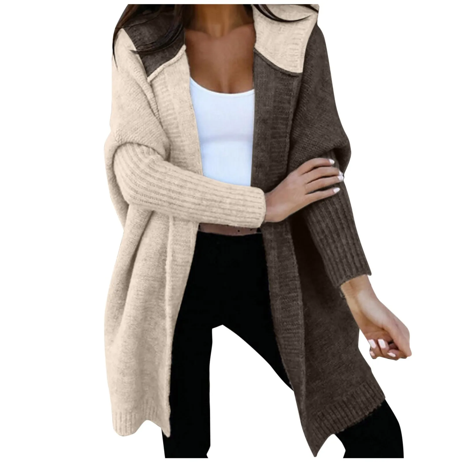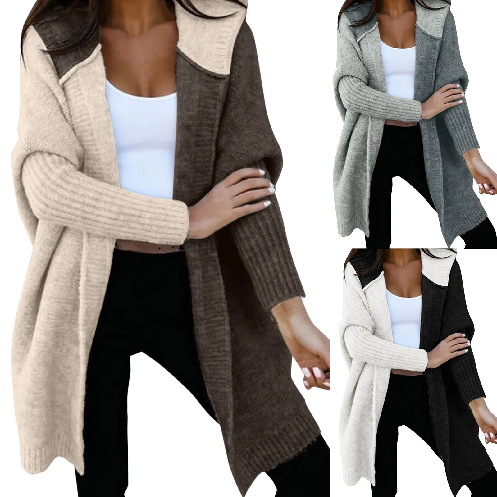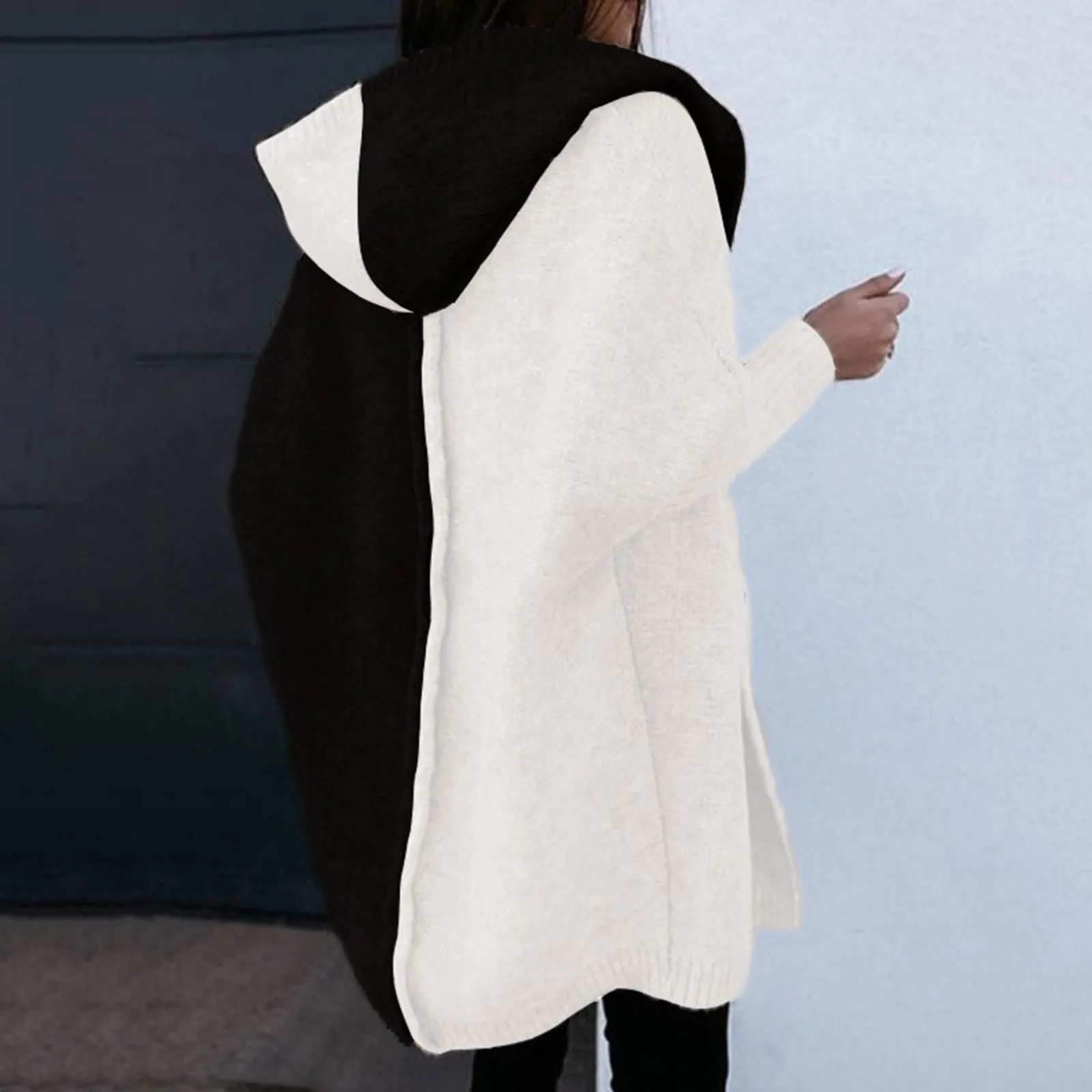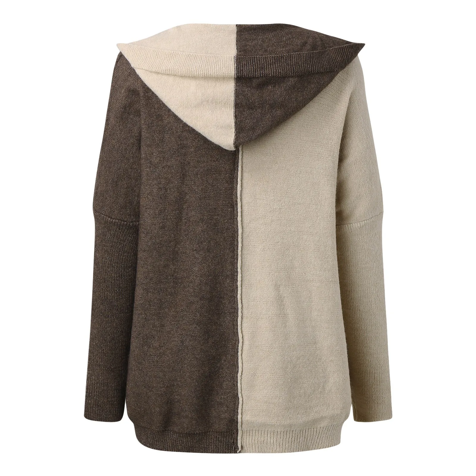 Features: Novel color block patchwork design; hoodie open front; casual long sleeves cardigan.