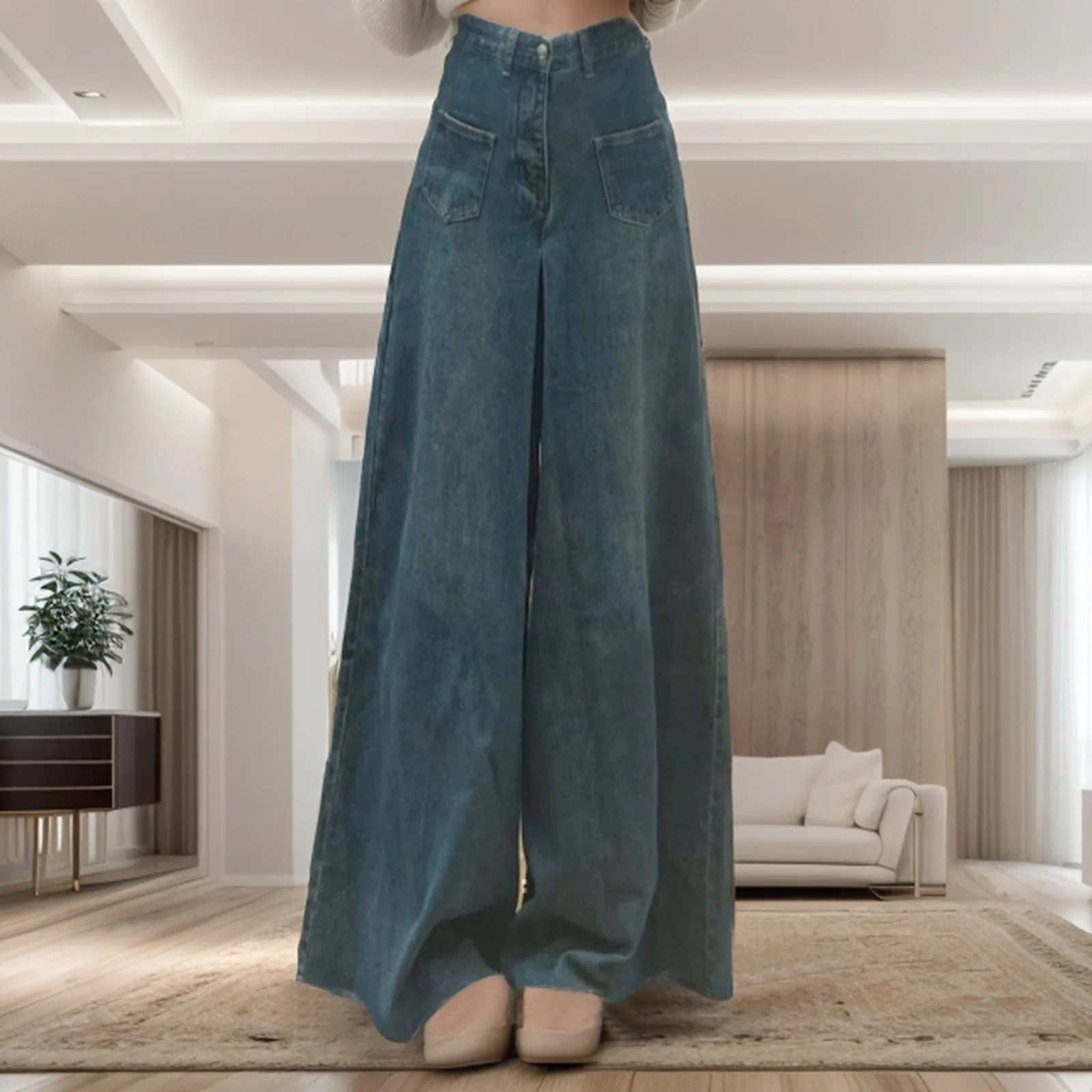 Women'S Casual Wide Leg Jeans Boho Bell Bottom Pants