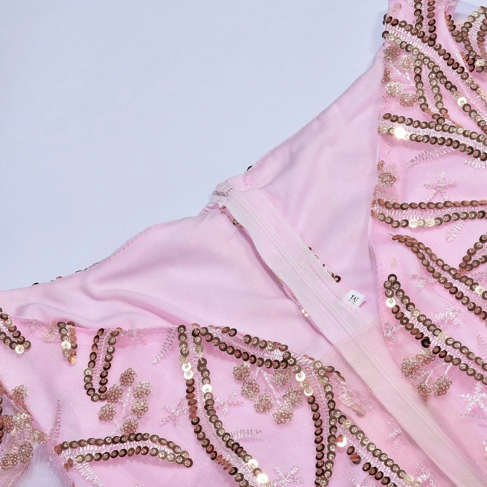 Women's sexy mesh train sequin split pink evening gown