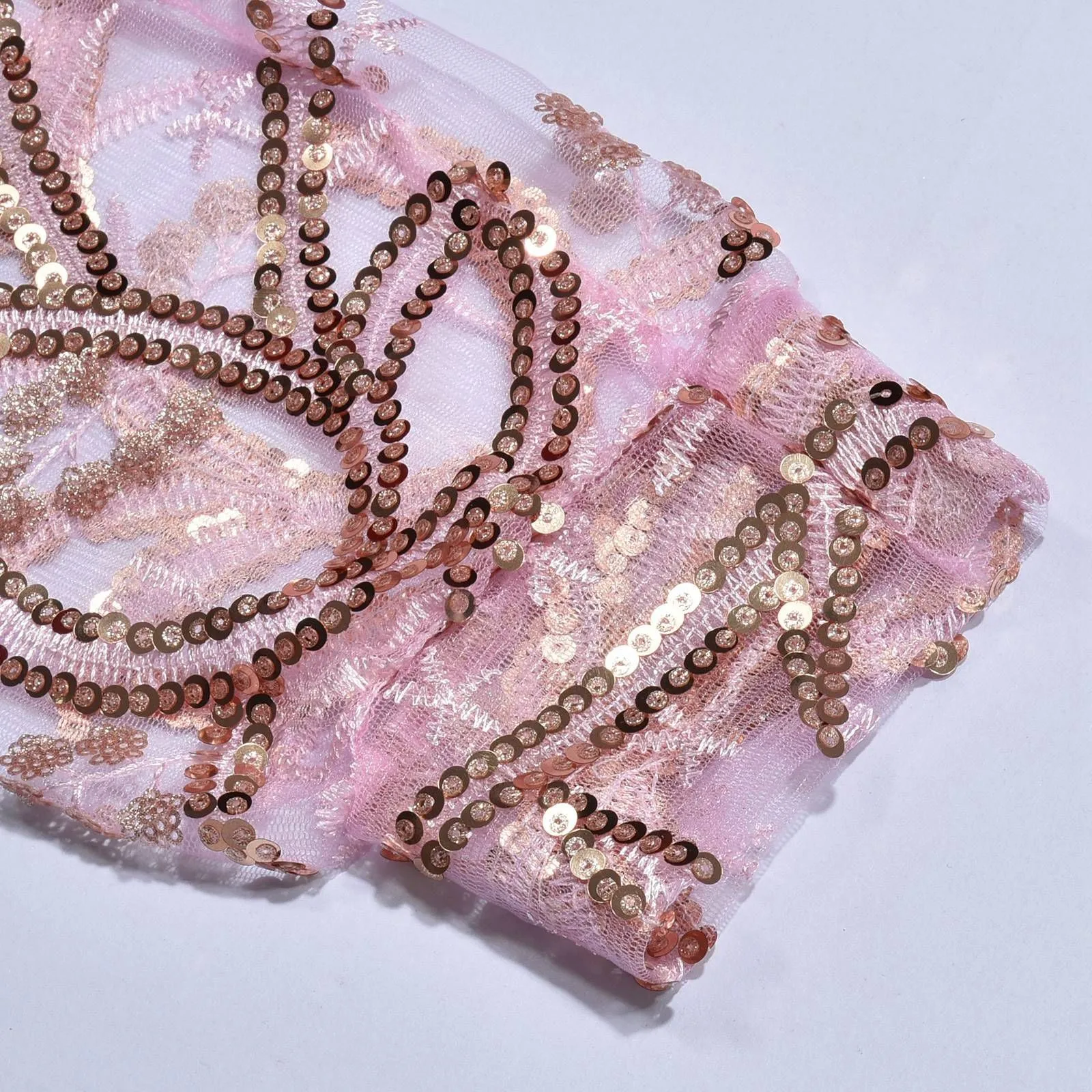 Women's Sexy Mesh Train Sequin Split Pink Evening Gown