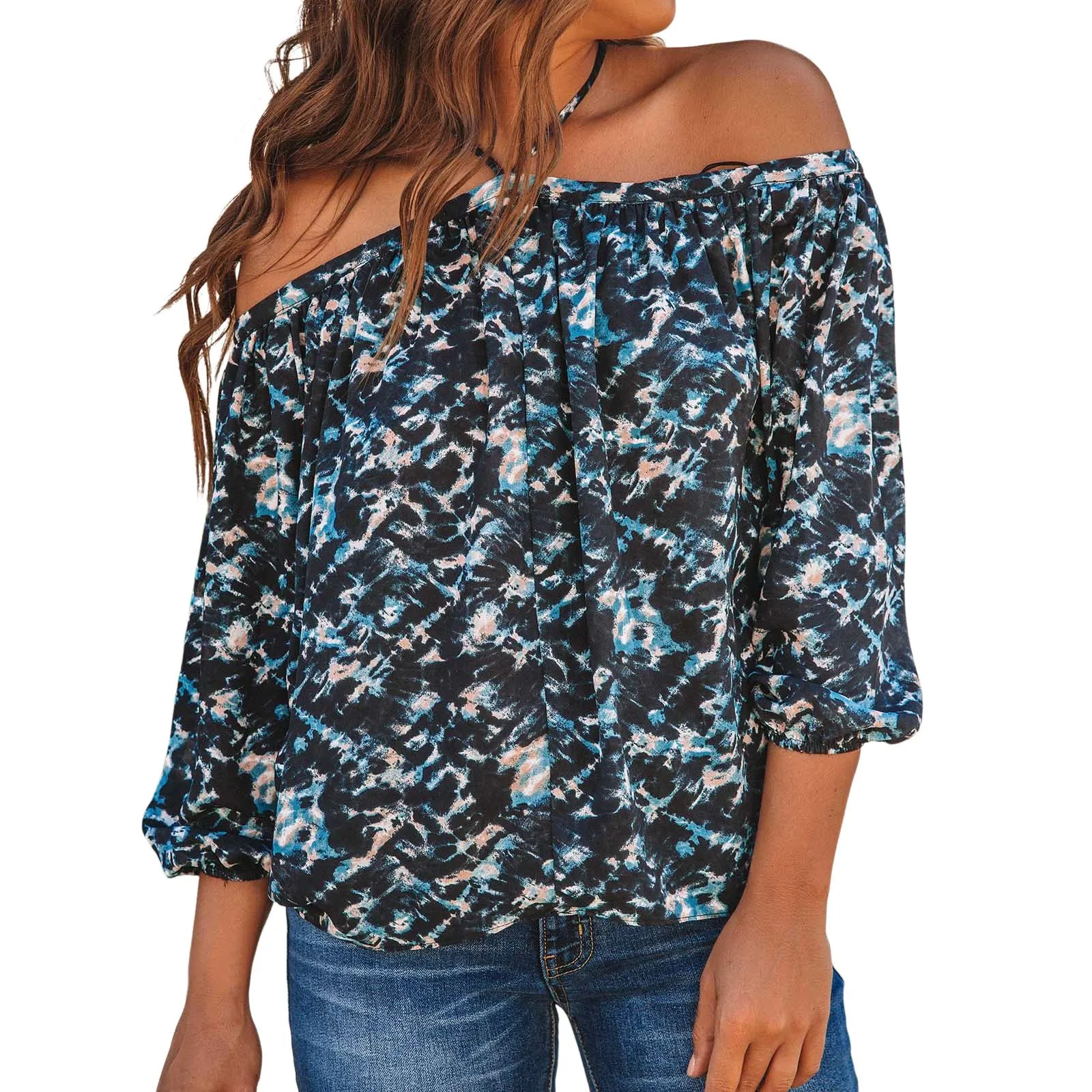 Women's Off Shoulder Printed Shirt Casual Long Sleeeve Halter Blouse
