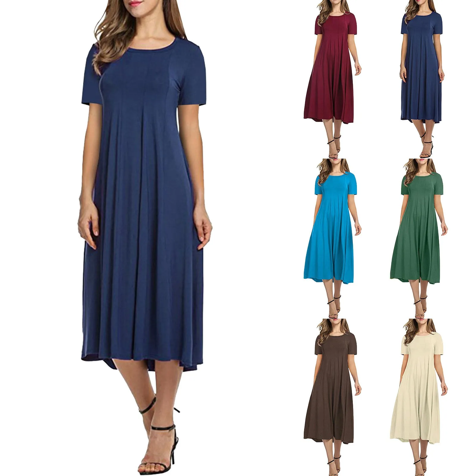 Women'S Summer Dress Round Neck Short Sleeved Long Dresses