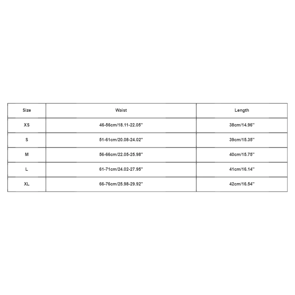 | Size:XS | Waist:46-56cm/18.11-22.05'' | Length:38cm/14.96'' |