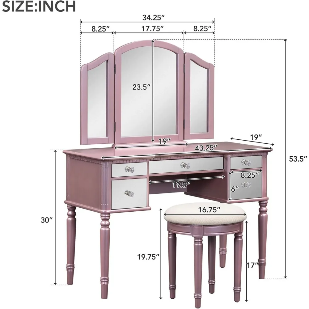 Wood Makeup Vanity Desk With 5 Specular Drawers
