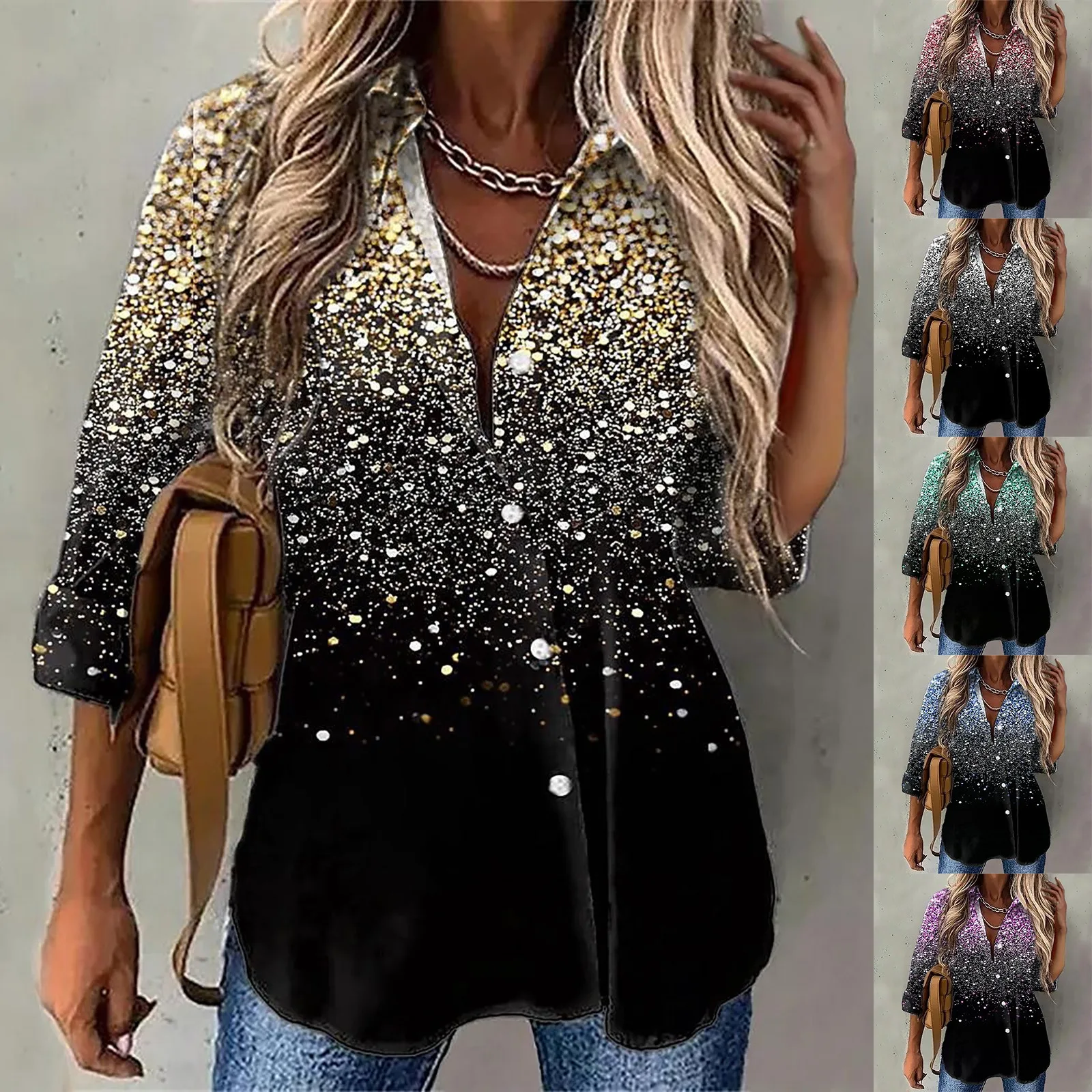 Workout Shirts Women Womens Sequin Print Tops V Neck Sparkly Glitter Blouses