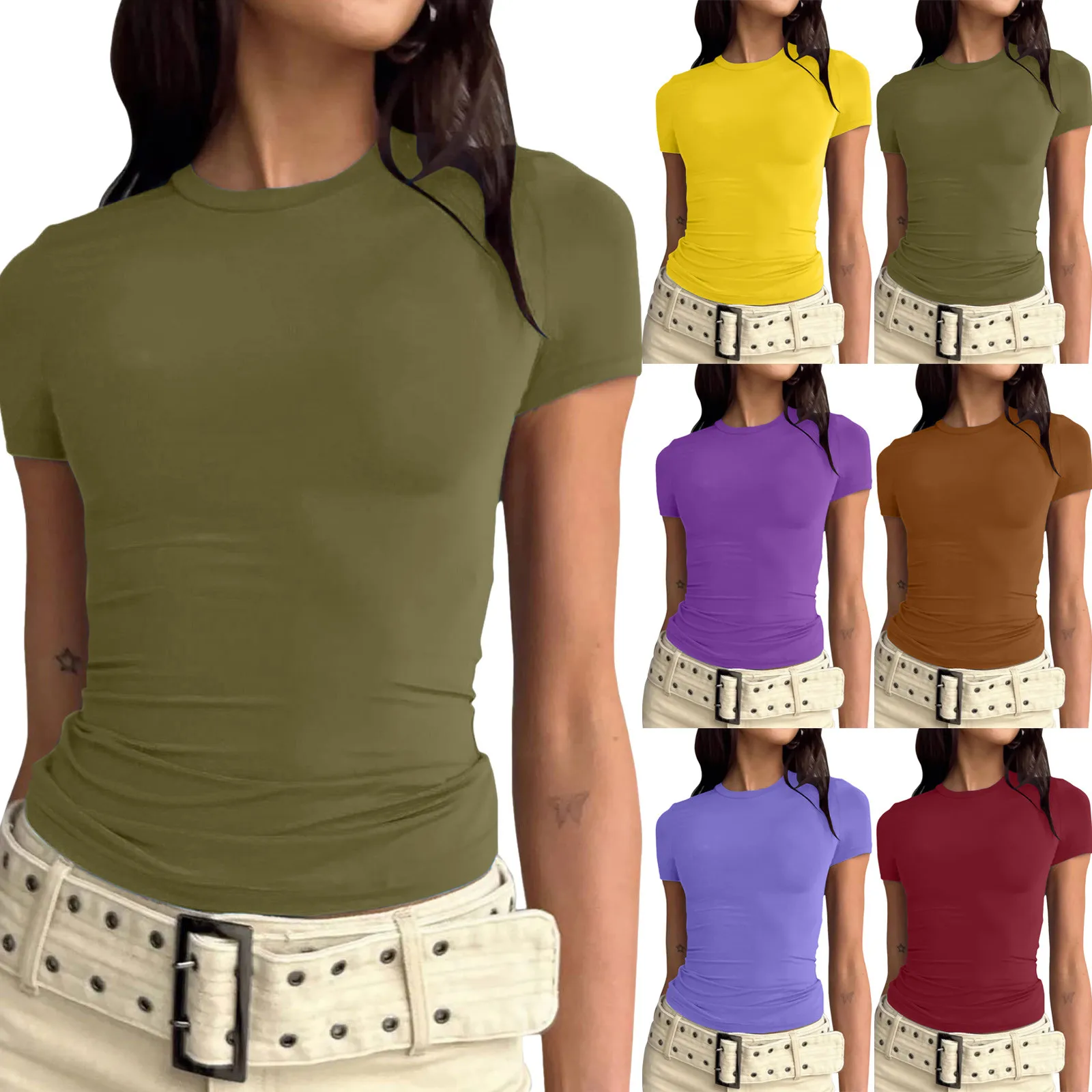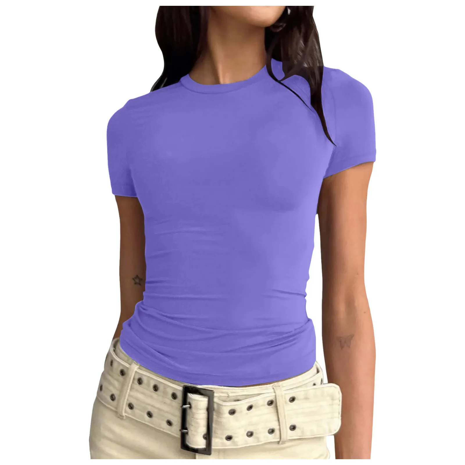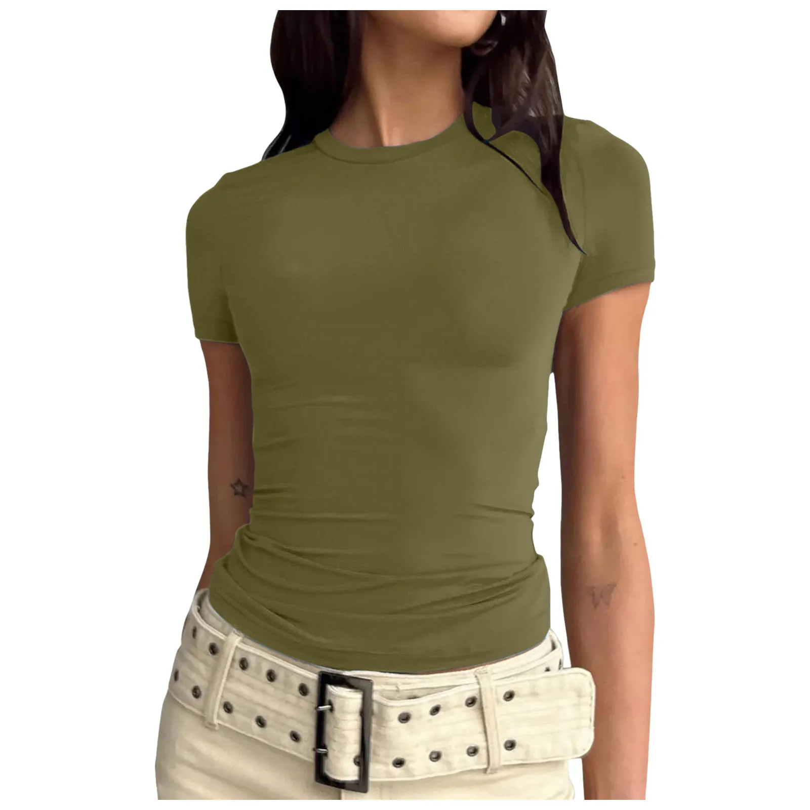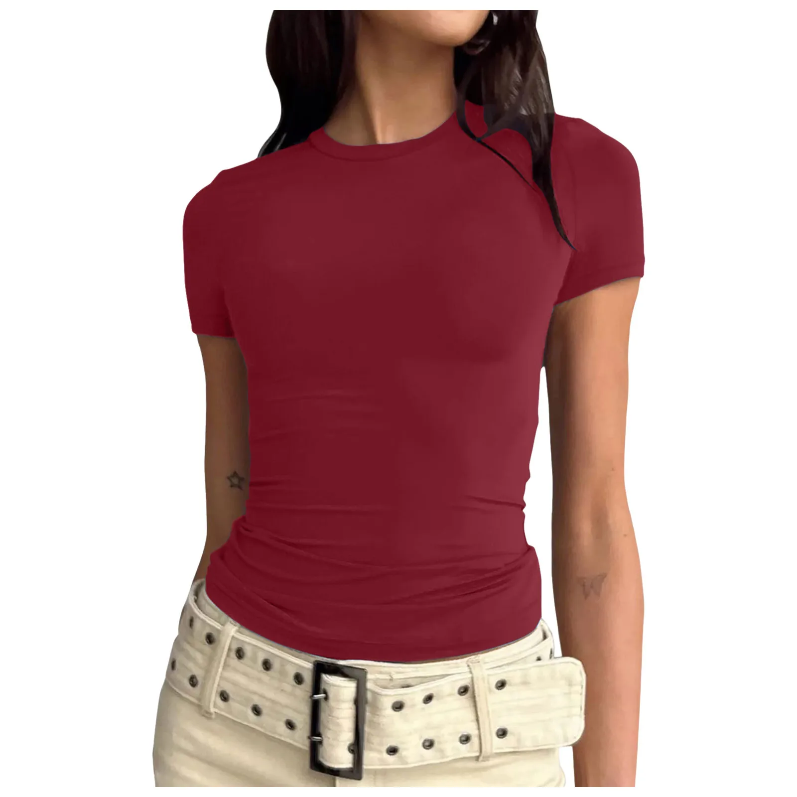 Y2K Basic T Shirt For Women 2024 Summer Short Sleeve